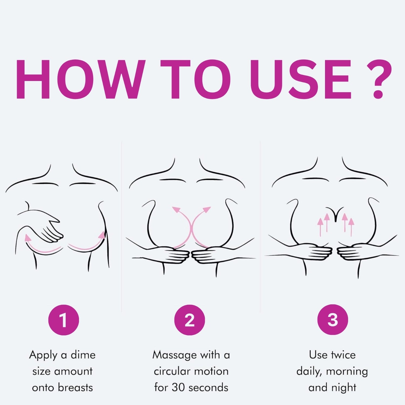 - Apply a little amount on breast, message in circular motions for 30 seconds in upward direction.
