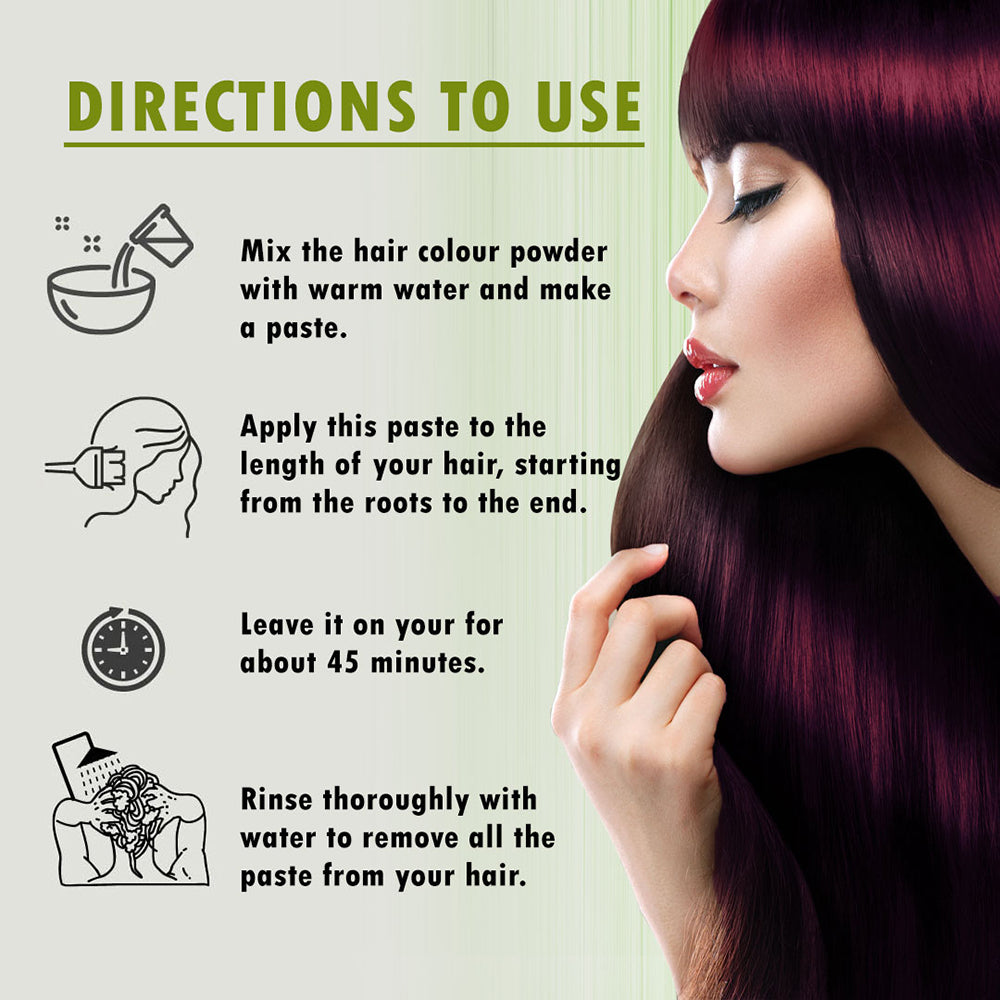 - Step 1 : Mix the hair colour powder with warm water and make a paste. Leave this paste for 30 minutes to get natural ingredients become active.