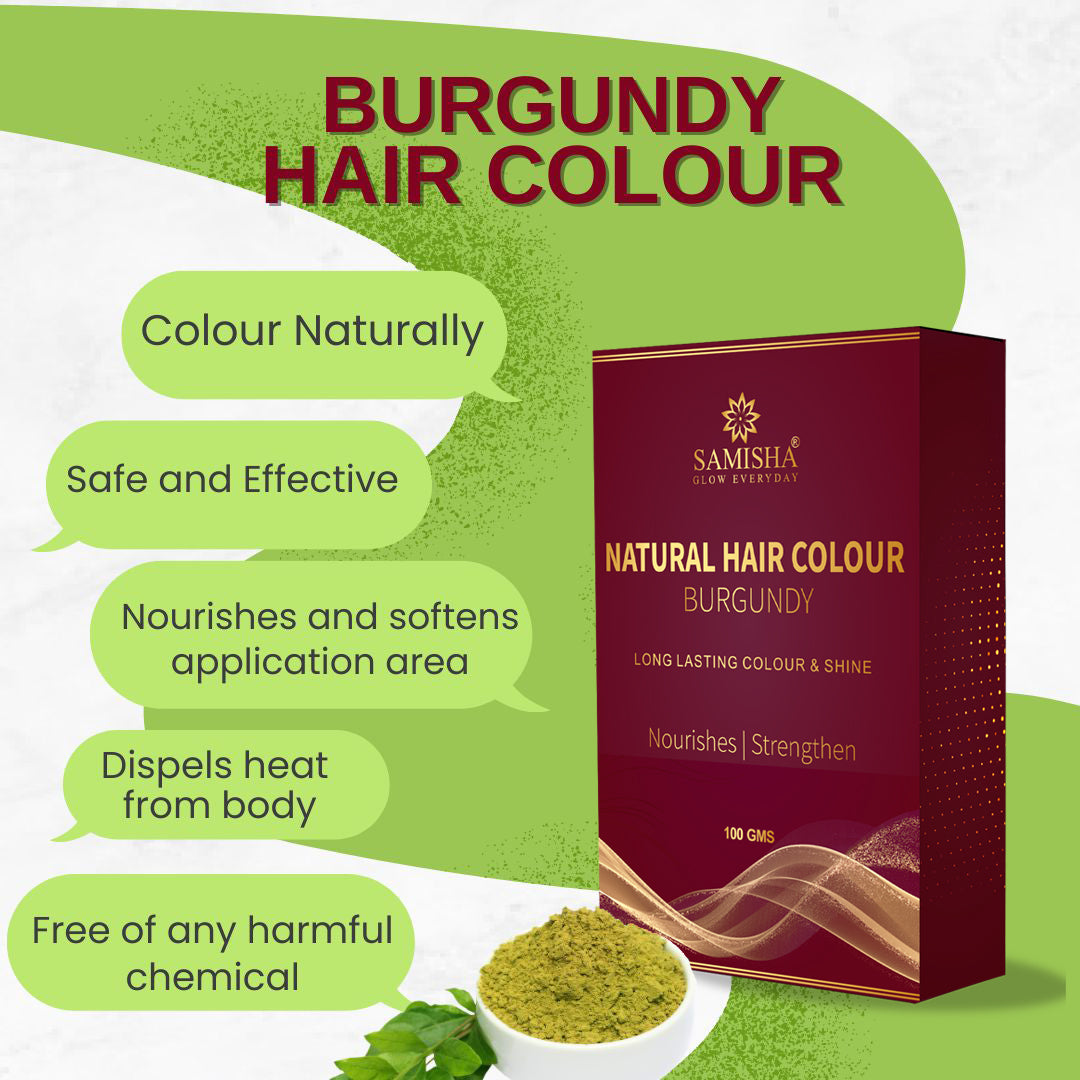 - Samisha Organic Heena based Natural Hair Colour" nourishes, conditions and strengthens hairs. It penetrates into hair fibres to give 100 % Coverage, delivers rich, long lasting, radiant shine & makes hair silky & smooth. It is enriched with natural ingredients like Mahendi ( Heena ), indigo, jatmasi, naharmotha, neem, curry leaves, hibiscus, amla, shikakai, cinnamon powder & kalonji powder. It's 100 % safe from harsh chemicals like ammonia & sulfates. Patch Test Recommended.