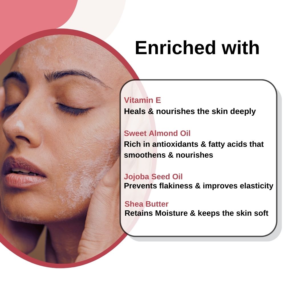 - Jojoba Oil: Prevents flakiness & improves elasticity
