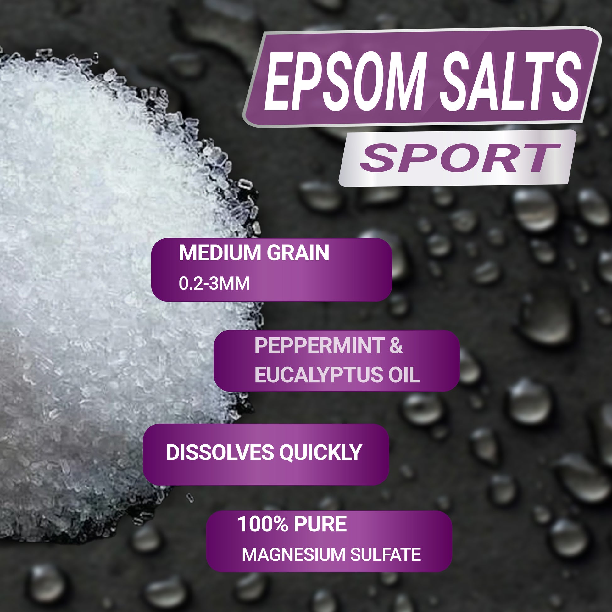- Epsoak Sport - Soothing is a natural peppermint & eucalyptus infused Epsom salt soak ideal for promoting restoration and relaxation. Pure Epsom Salt is the best post-workout Muscle Recovery for athletes. Epsoak Epsom Salt is a pure mineral compound of Magnesium Sulfate. Epsoak SPORT Epsom Salts are premium grade making it the optimal quality for athletes.