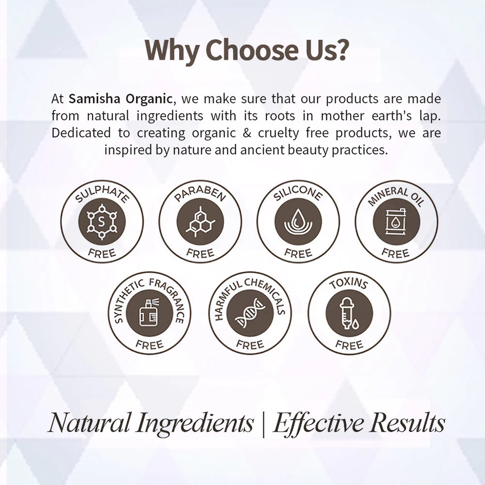 MRP Rs. 499.00 (inclusive of all taxes) | Marketed By: Samisha Organic (OPC) Private Limited B-248, Nehru Ground, NIT, Faridabad, Haryana 121001 | Manufactured By: BO International, Delhi | Country of Origin -India
