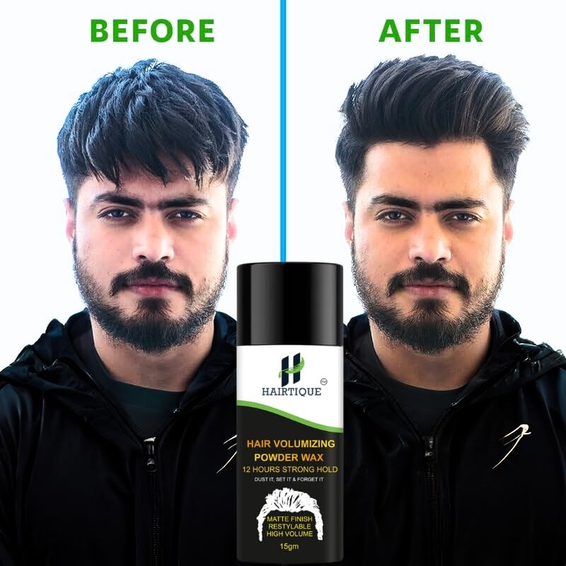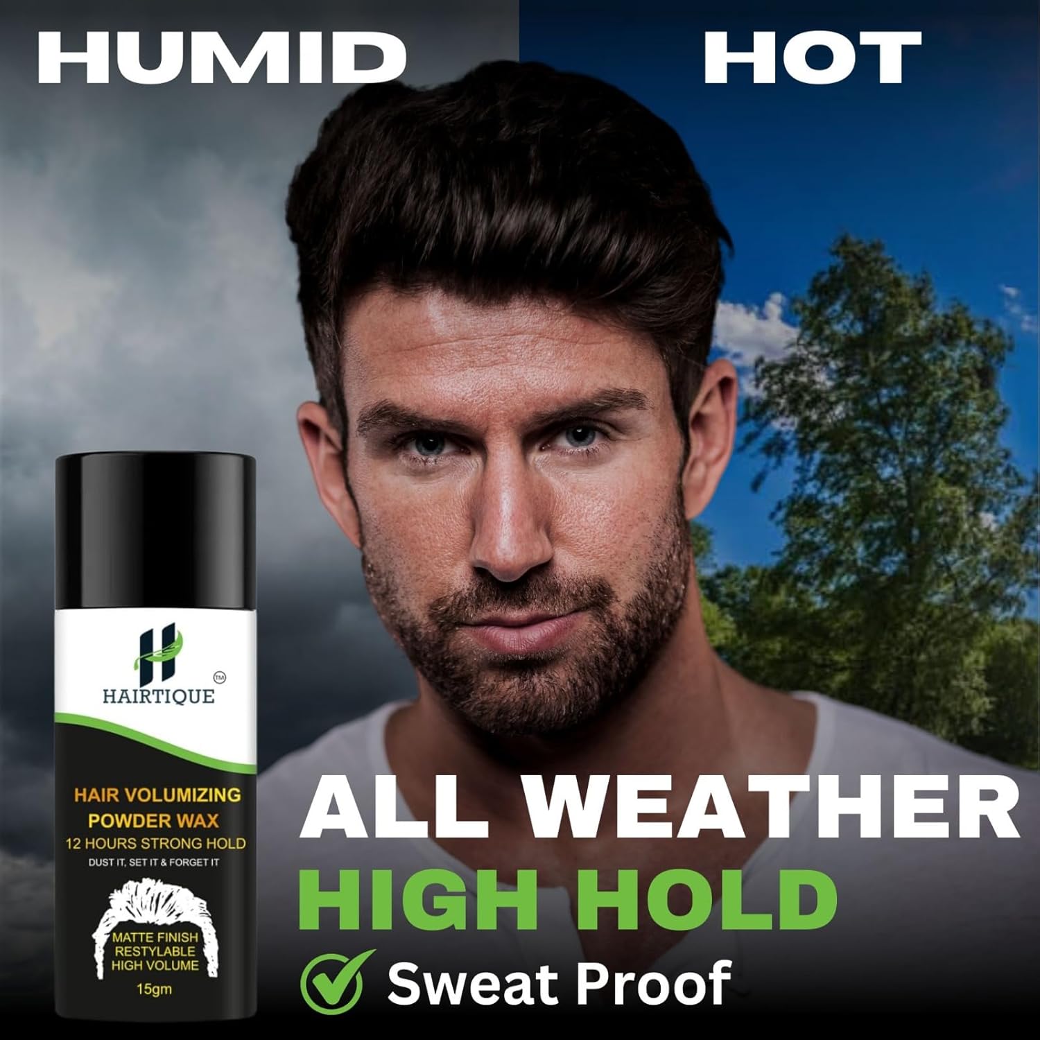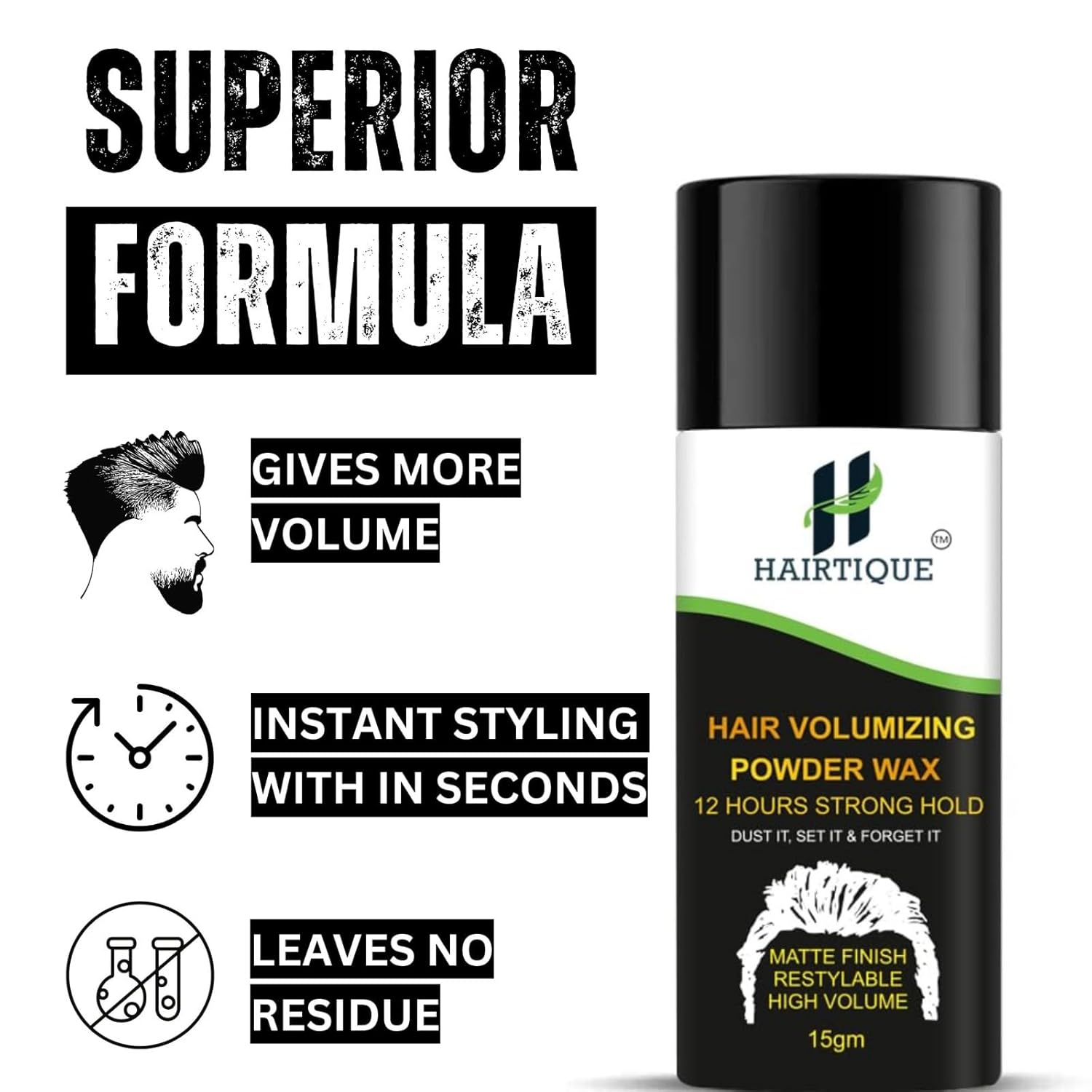 - Hairtique Hair Volumizing Powder Wax/Hair Texturizing Powder for Strong Hold | Matte Finish | 24 hrs hold | 100% Natural & Safe Hair Styling Powder (10 g)