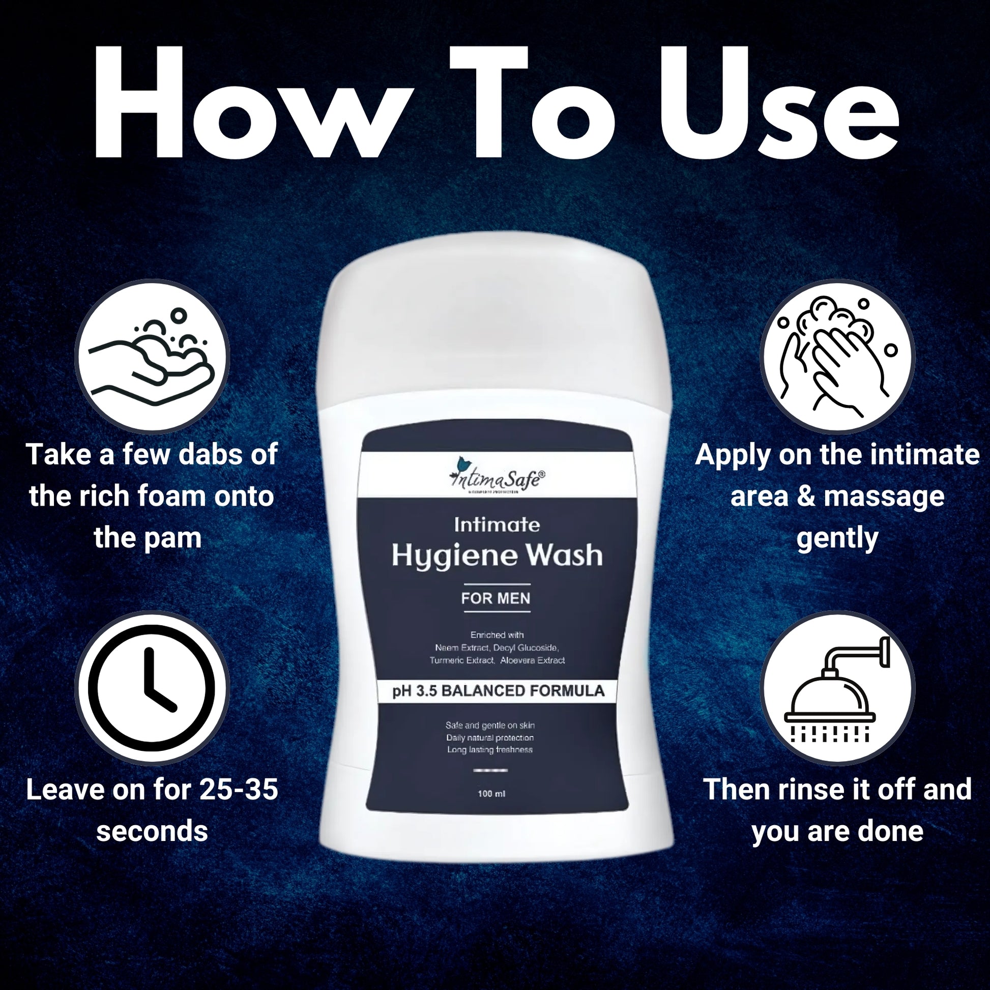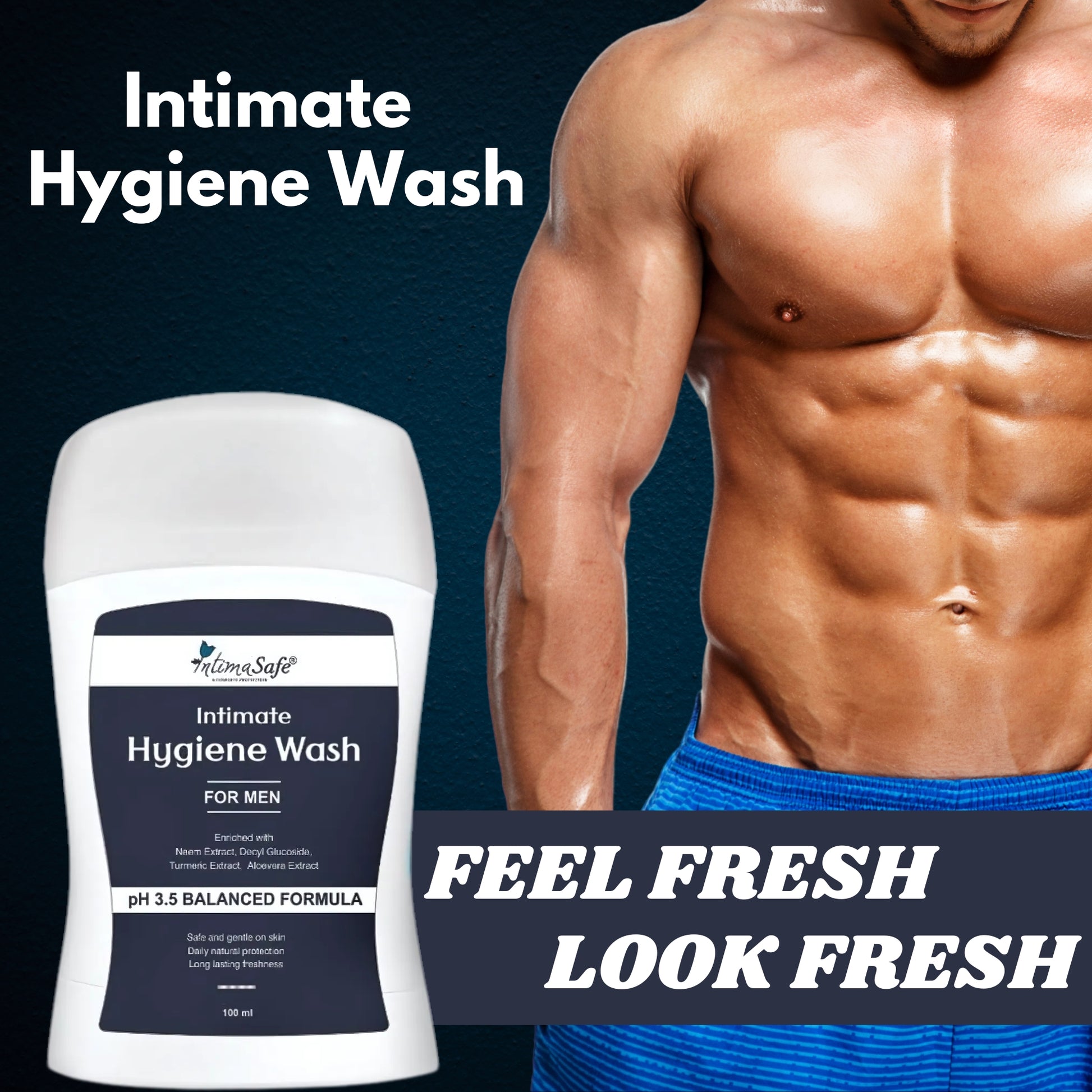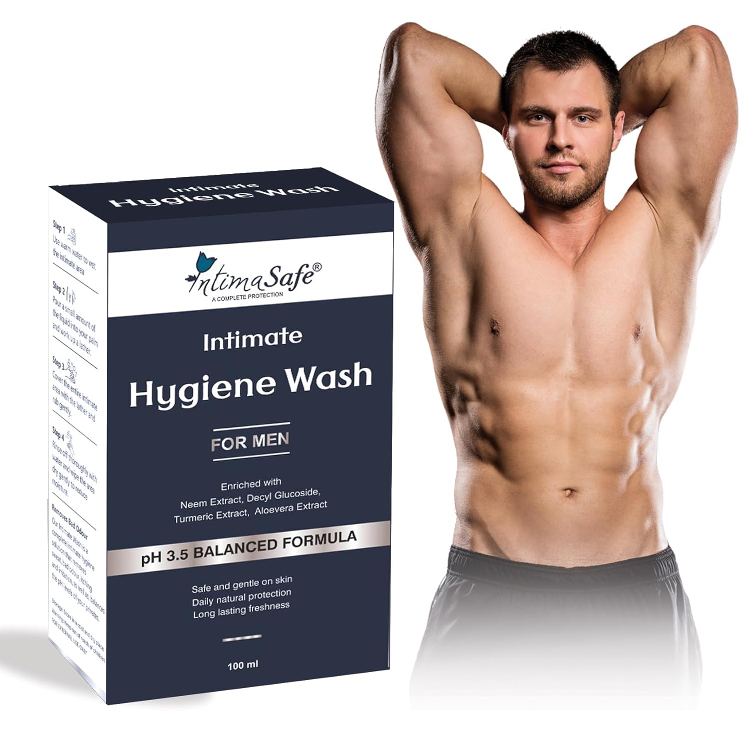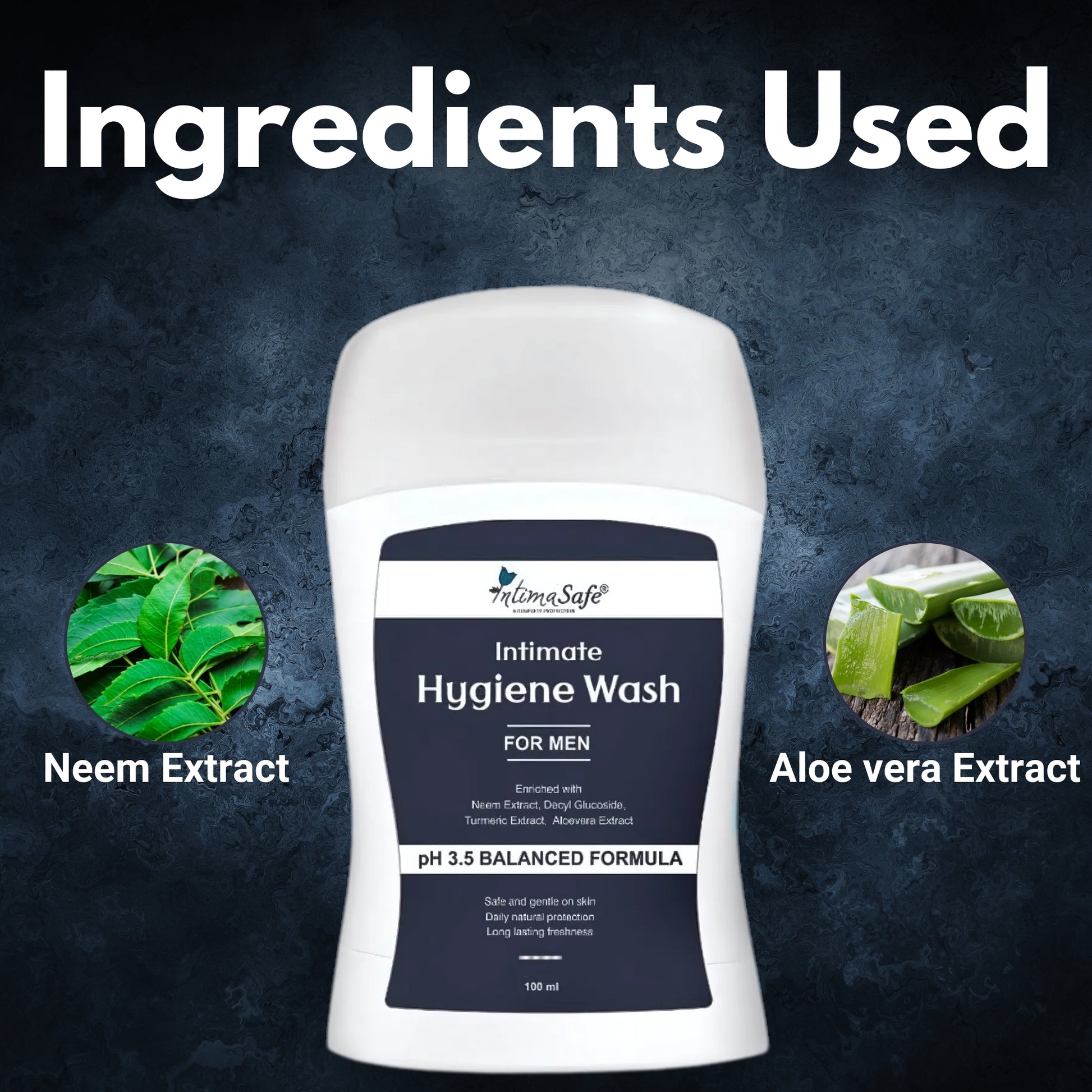 - Intima Safe Men's Intimate Wash contains neem, turmeric which acts as an antibacterial and antifungal, while Witch Hazel relieves itching and irritation.