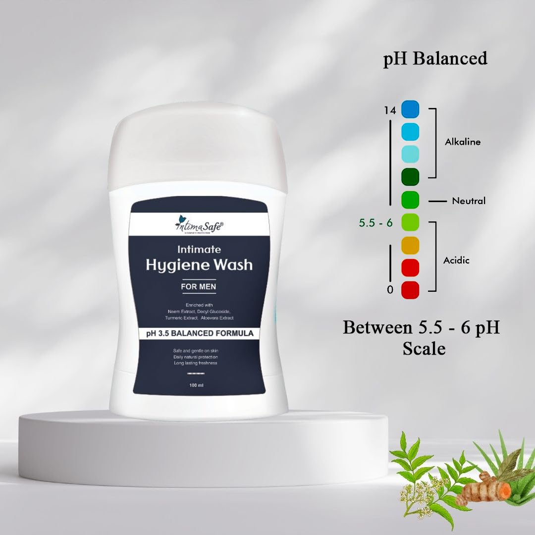 - Intimate Wash has been formulated to maintain a healthy pH level for your intimate areas, it maintains the pH level between 5.3 and 5.8 which has been found the ideal for men's intimate areas.