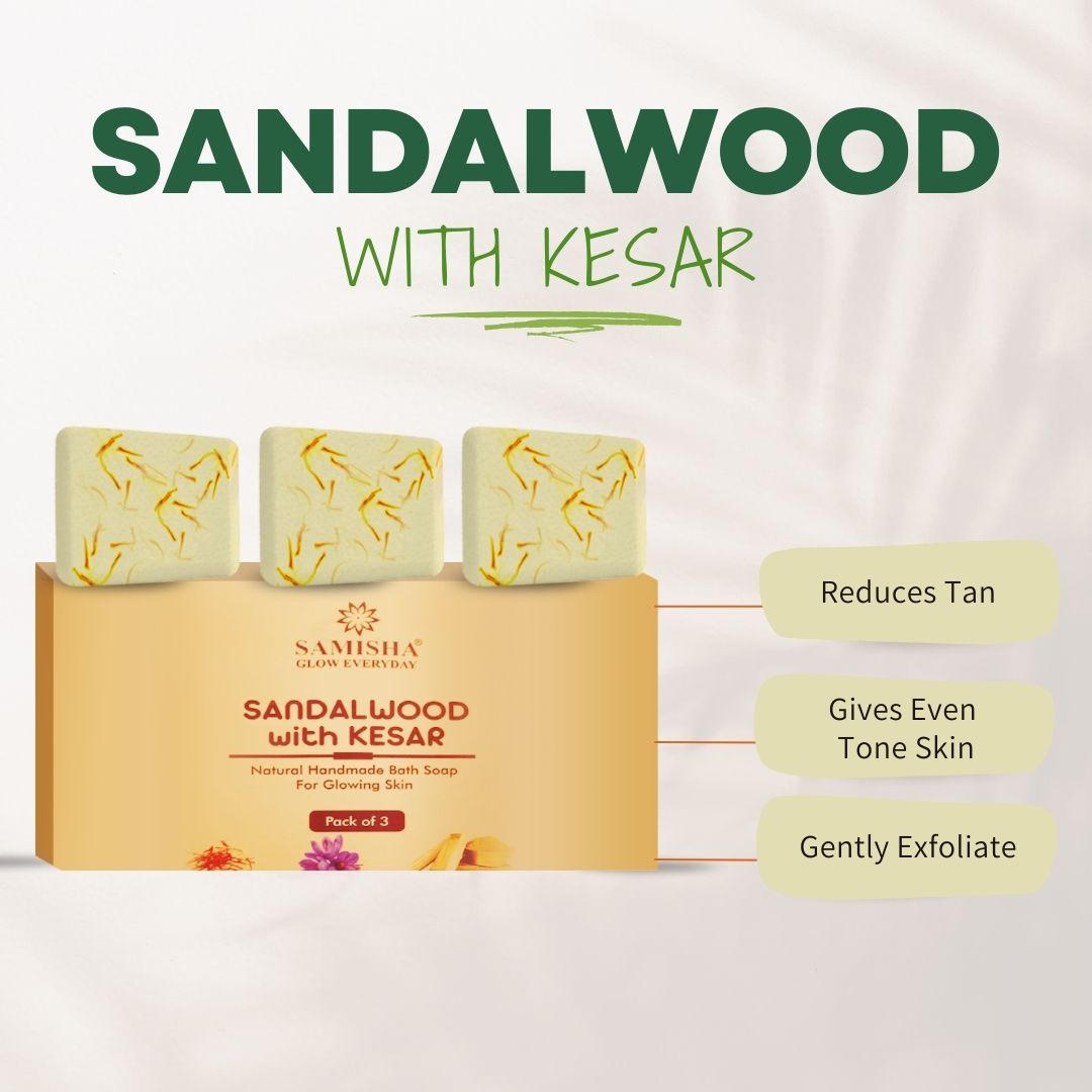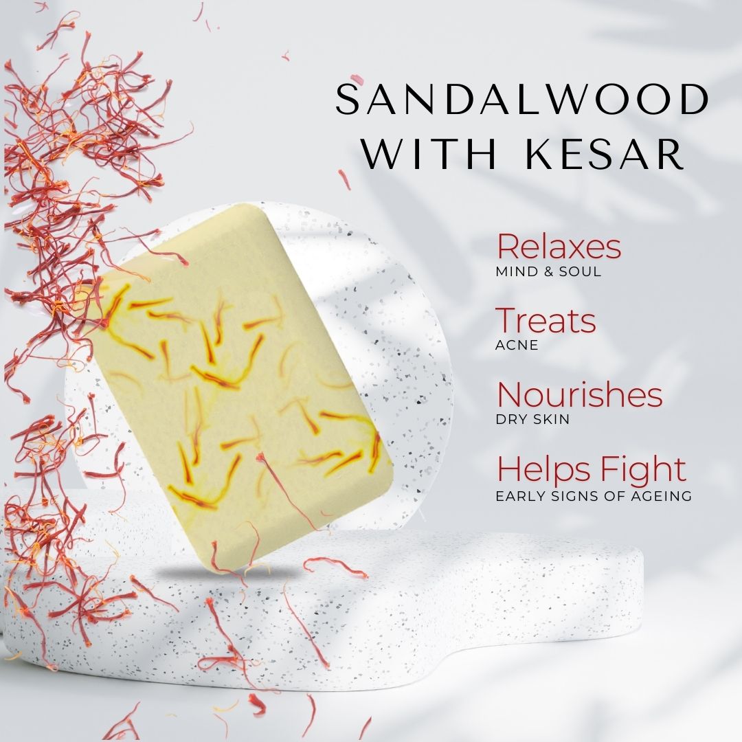 Handmade Sandalwood & Saffron Soap - Pack of 3 - 375 gm