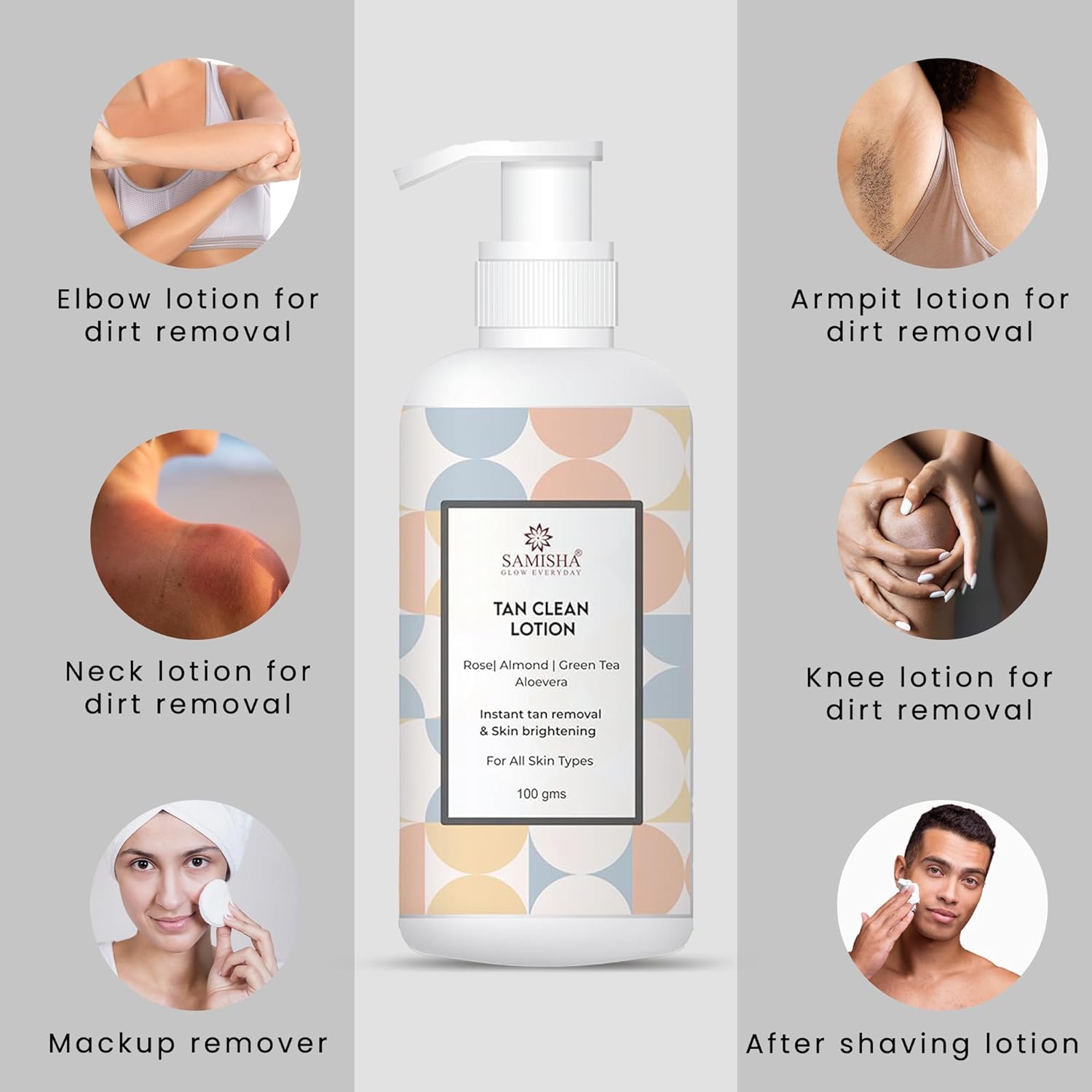 - Customers said it can be used on all body parts and it effectively removes tan from face, knees, elbows neck specially.