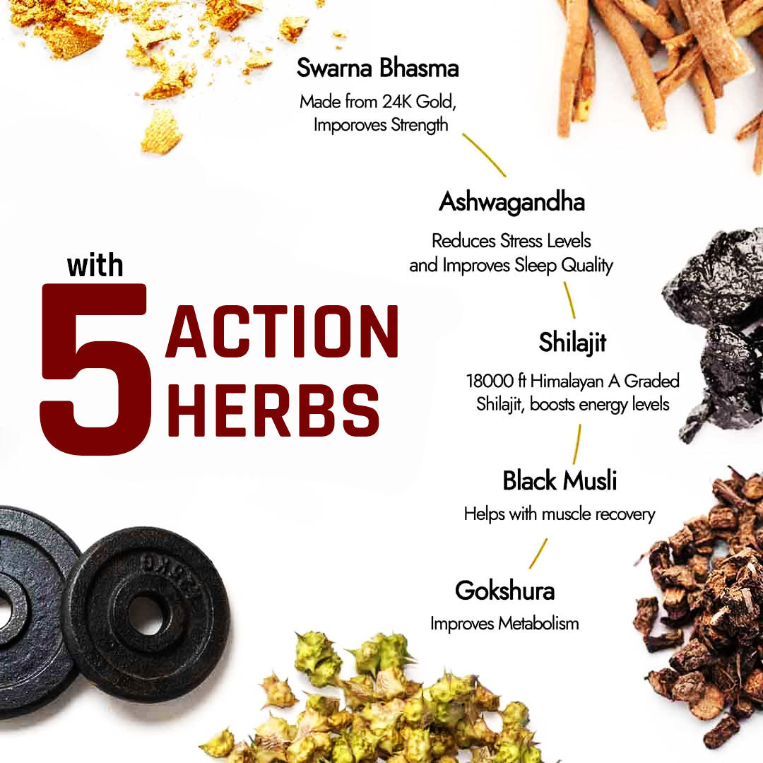 - INCREASES STRENGTH & STAMINA: Himalayan shilajit, swarna bhasma and other herbs are clinically tested to increase stamina levels