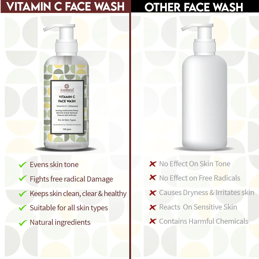 - Samisha Vitamin C Face Wash is a perfect blend of nature that will help you to look radiant & beautiful. Its the best face wash for oily skin that will remove excess oil and makes your skin complexion youthful. It controls oil as well and aloevera in it makes it best face wash for acne.