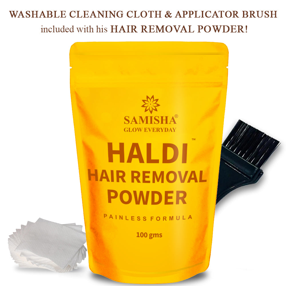 - Customers find this hair removal powder effective at removing unwanted hair without pain or irritation, and many customer notes it works well on fine hair. Moreover, the product receives positive feedback for its ease of use for at-home waxing, leaving skin soft and clean, with a pleasant haldi sandalwood fragrance. Additionally, customers appreciate its natural ingredients, chemical-free formula, and consider it worth the price, with one noting it's a budget-friendly alternative to salon waxing. Customers find it also helps in removing tan and gives glowing skin.